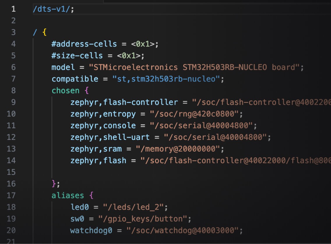 Complete DTS and DTSI files with correct bindings, pin assignments, and peripheral nodes. Ready for build.