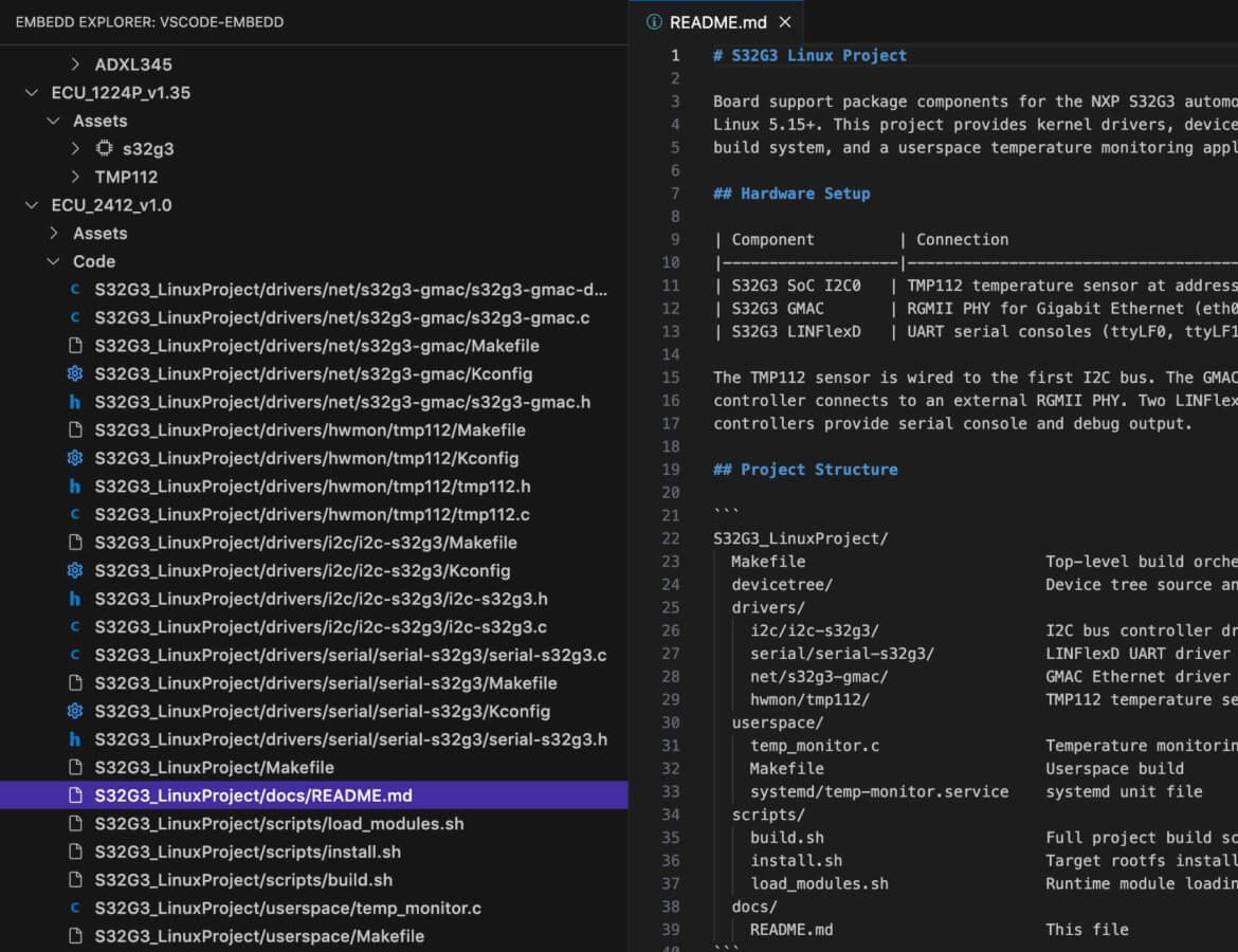 Organized build files, Kconfig entries, and CMake integration. Plugs into your existing workflow.
